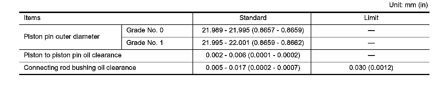 ^ If the calculated value exceeds the limit, replace piston and piston pin assembly.