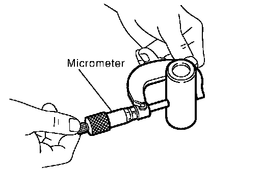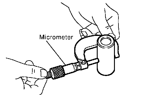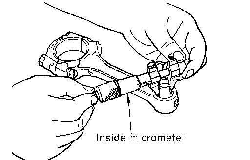 Measure the inner diameter of connecting rod bushing with an inside micrometer.