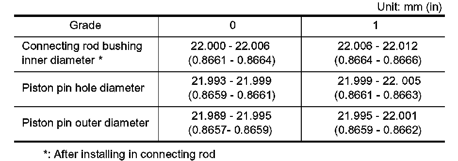 ^ Piston pin (piston pin hole) grade is provided only for the parts installed at the plant. For service parts, no piston pin grades can be selected. (Only 0 grade is available.)