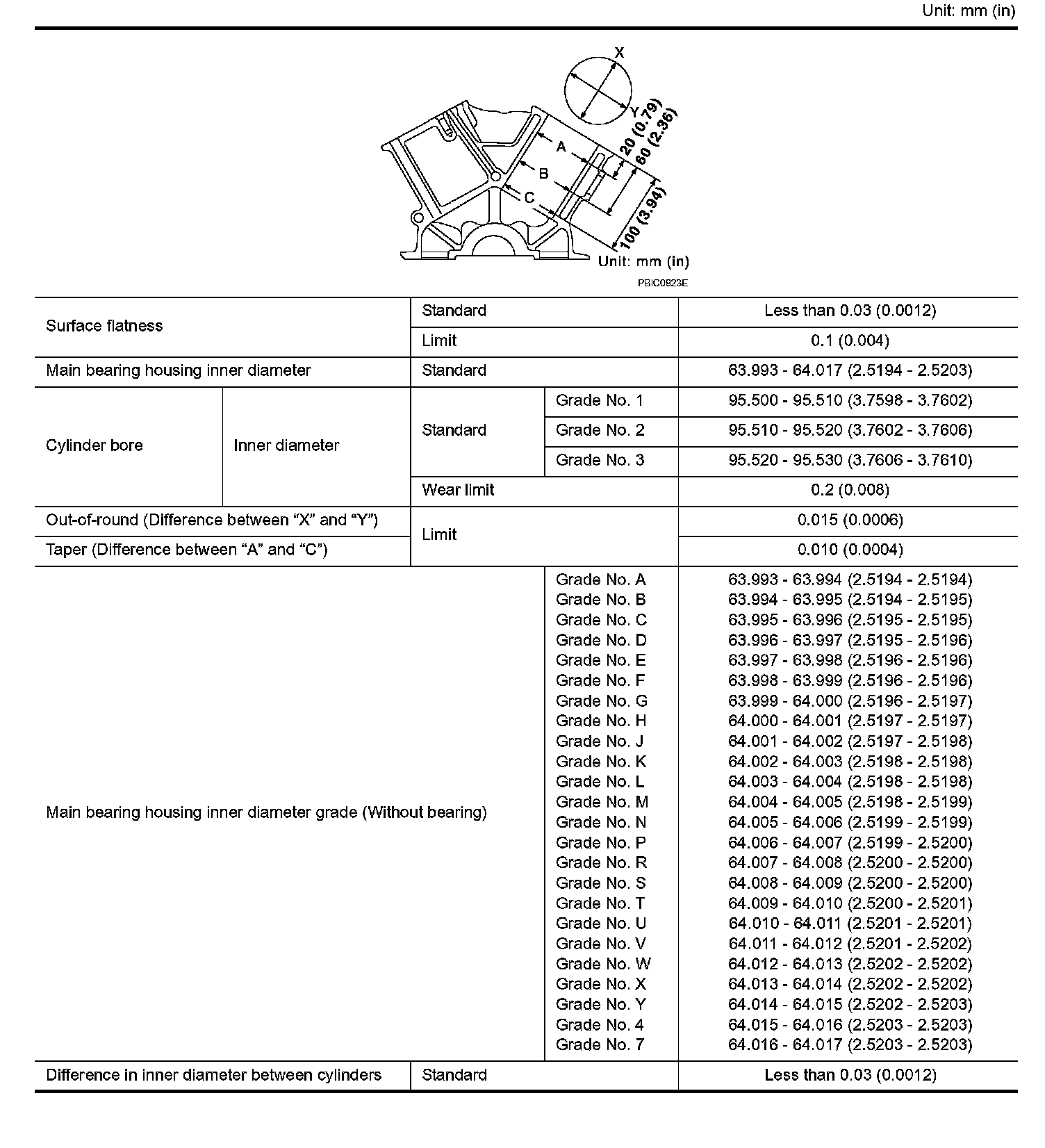 Standard: 63.993 - 64.017 mm (2.5194 - 2.5203 inch)