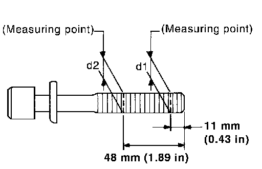 ^ Cylinder head bolts are tightened by plastic zone tightening method. Whenever the size difference between d1 and d2 exceeds the limit, replace them with new one.
