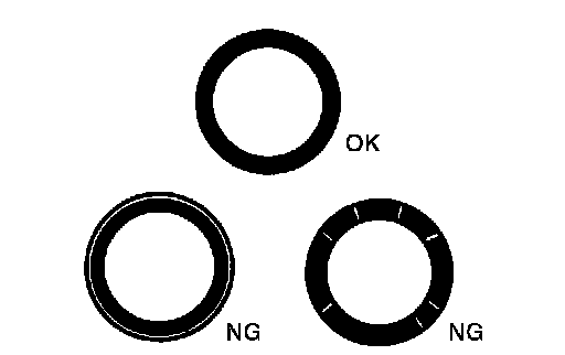 ^ If not, grind to adjust valve fitting and check again. If the contacting surface still has NG conditions even after the re-check, replace valve seat.