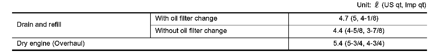ENGINE OIL CAPACITY (APPROXIMATE)