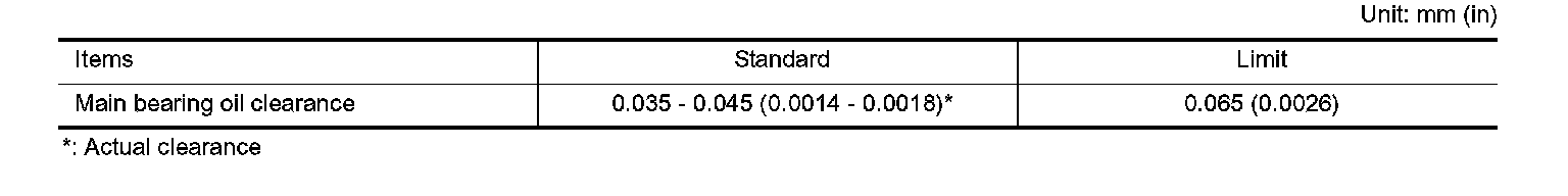 Main Bearing Oil Clearance: