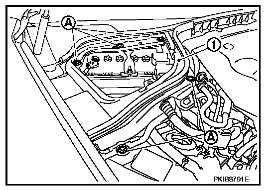 4. Loosen battery terminal nuts (1), and disconnect both battery cables from battery terminals.