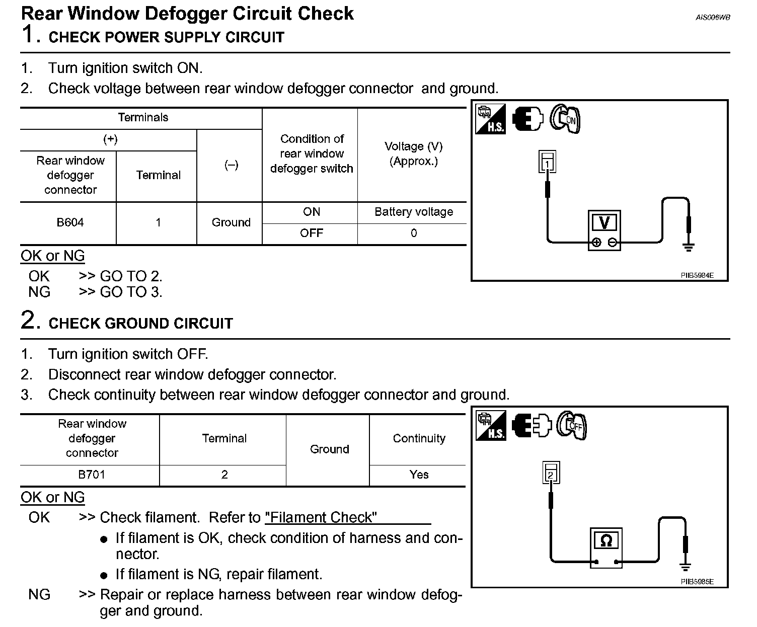 Rear Window Defogger Circuit Check
