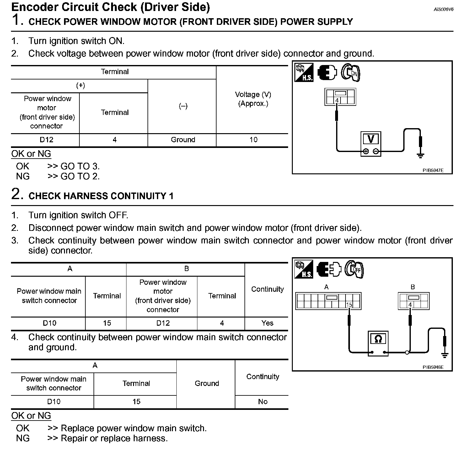 Encoder Circuit Check (Driver Side) (Steps 1 - 2):