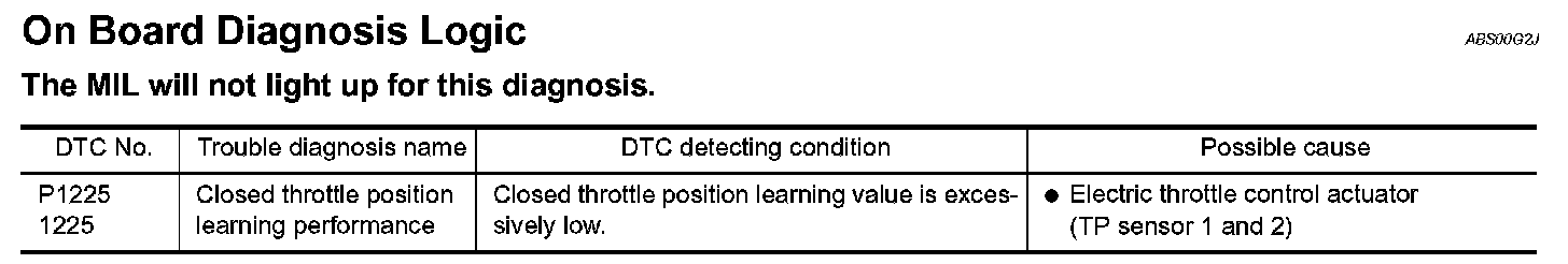 DTC P1225 TP SENSOR