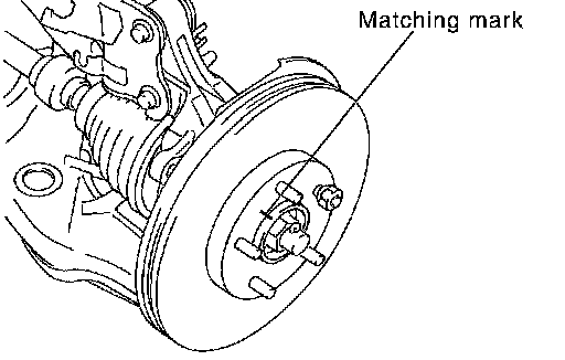 CAUTION: Put matching marks on wheel hub assembly and disc rotor, if it is necessary to remove disc rotor.