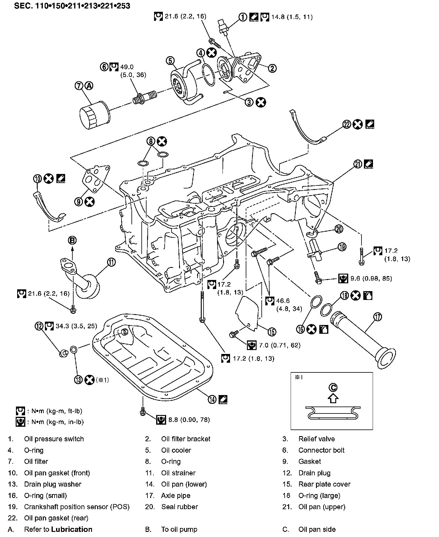 OIL PAN AND OIL STRAINERComponents: