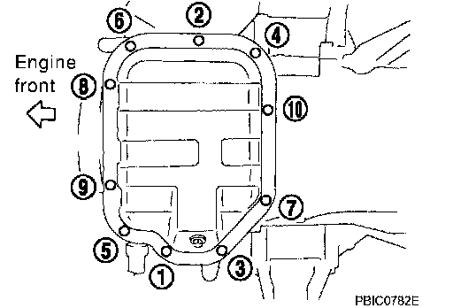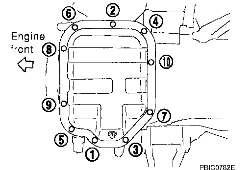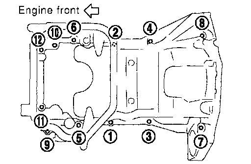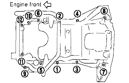 NOTE: When removing oil pan (lower) only, steps 2 to 6 are not necessary. Perform step 25 after completing step 7.