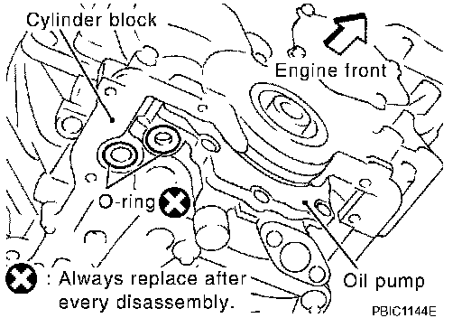 29. Remove O-rings from bottom of cylinder block and oil pump.