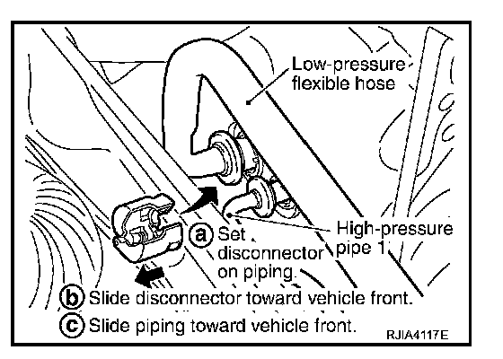 a. Set a disconnector (High-pressure side: 92530-89908, Low-pressure side: 92530-89916) on A/C piping.