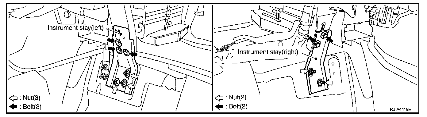 10. Remove mounting nuts and bolts, and then remove instrument stays.