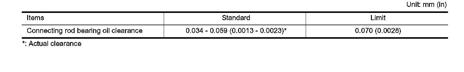 Standard: 0.034 - 0.059 mm (0.0013 - 0.0023 inch) (actual clearance)