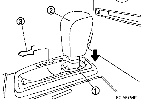 3. Remove knob cover (1) below selector lever downward.