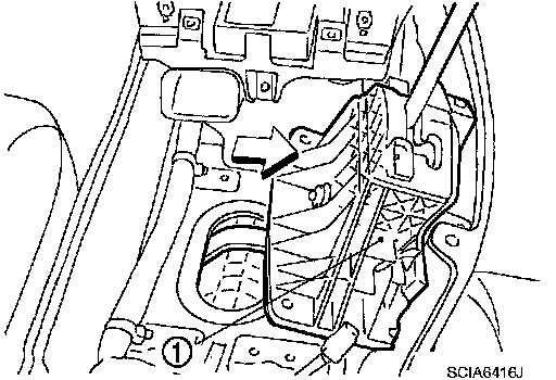 13. Lift control device assembly (1). Then slide to the right till touching floor carpet.