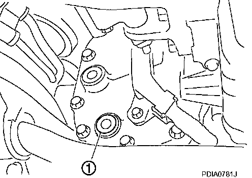 1. Remove filler plug (1). Fill with new gear oil until oil level reaches the specified level near filler plug mounting hole.