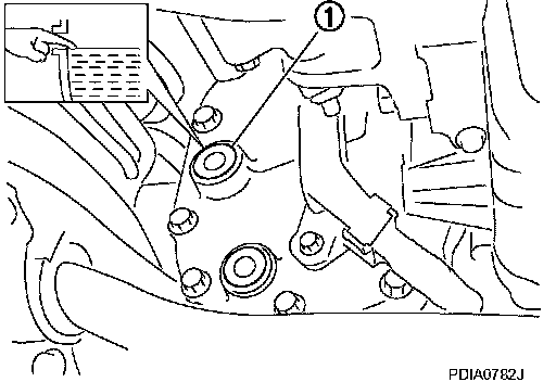 ^ Remove filler plug (1) and check oil level from filler plug mounting hole as shown in the figure.