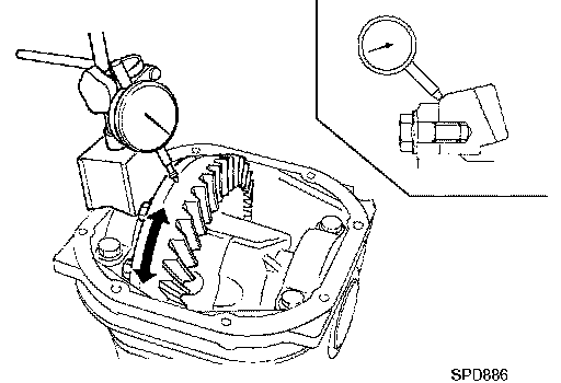 ^ If measured value is out of the specification, disassemble it to check and adjust each part. Adjust the pinion bearing preload and side bearing preload. Adjust the pinion bearing preload first, then adjust the side bearing preload.