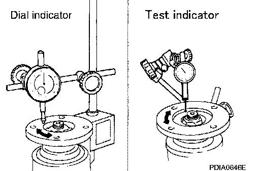 b. If the runout value is still outside of the limit after the phase has been changed, possible cause will be an assembly malfunction of drive pinion and pinion bearing and malfunction of pinion bearing. Check for these items and repair if necessary.