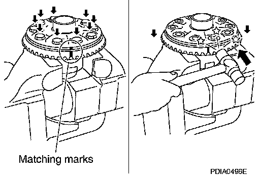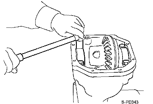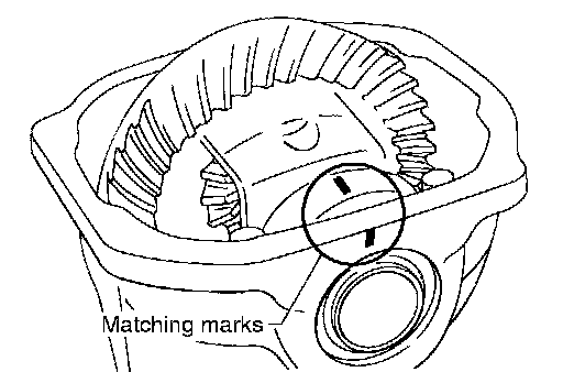 CAUTION: For matching marks, use paint. Do not damage differential case and drive gear.
