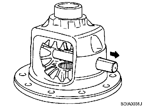 13. Remove lock pin of pinion mate shaft with a punch from drive gear side.