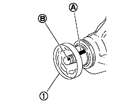3. Put matching mark (B) on the end of drive pinion. The matching mark should be in line with the matching mark (A) on companion flange (1).
