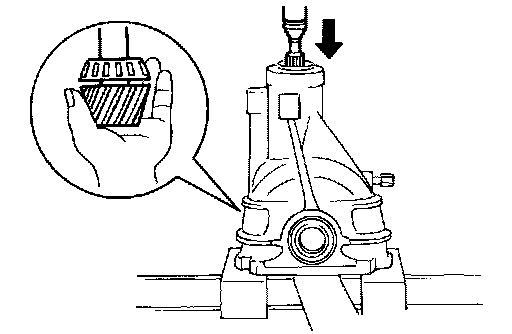 11. Tap pinion front/rear bearing outer races uniformly a brass rod or equivalent to removed.