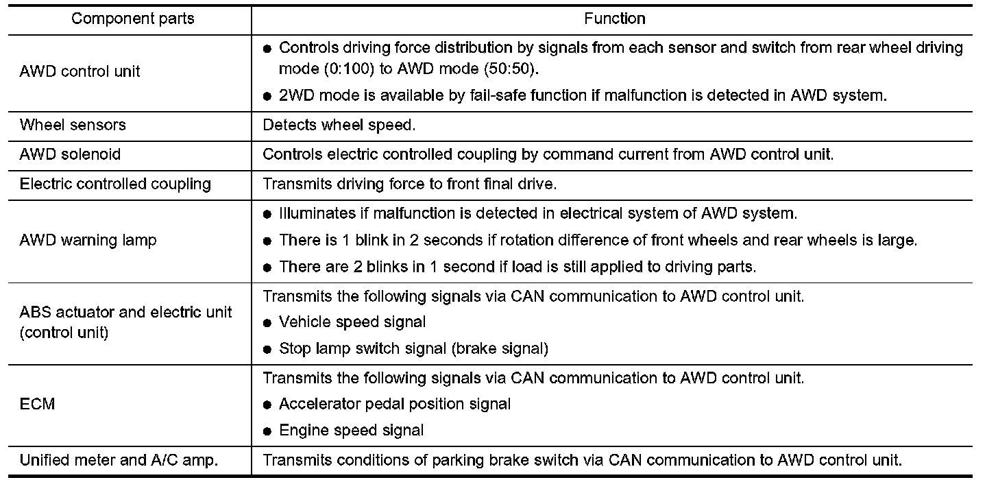 COMPONENTS FUNCTION DESCRIPTION: