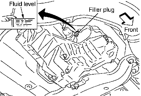 1. Remove filler plug and add transfer fluid until fluid level reaches the specified limit near filler plug mounting hole.