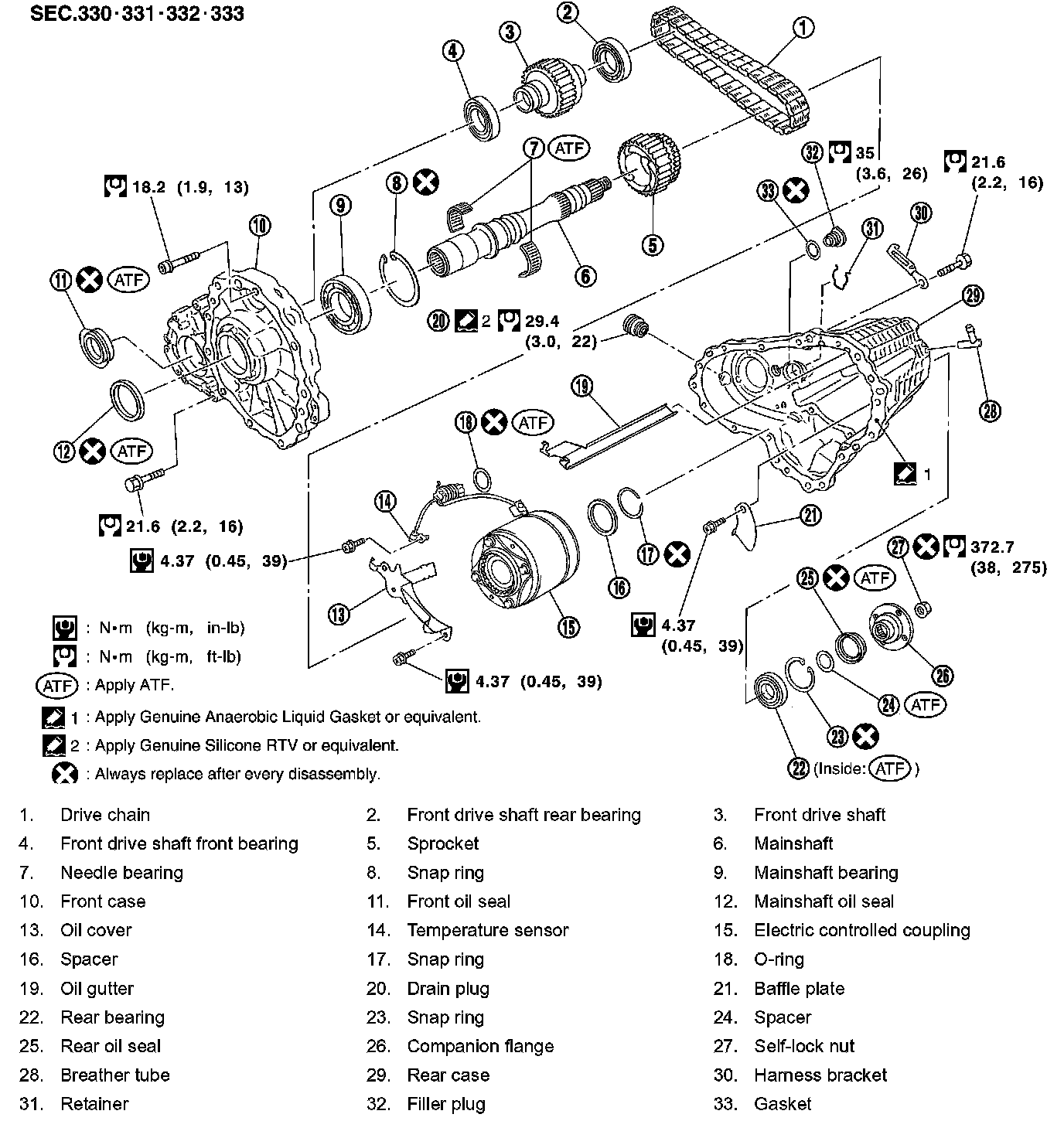 3. Before installing filler plug, set a new gasket. Install filler plug on transfer and tighten to the specified torque. Refer to "COMPONENTS".