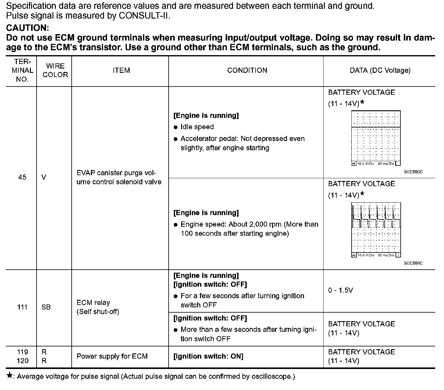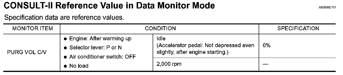 CONSULT-II Reference Value in Data Monitor Mode