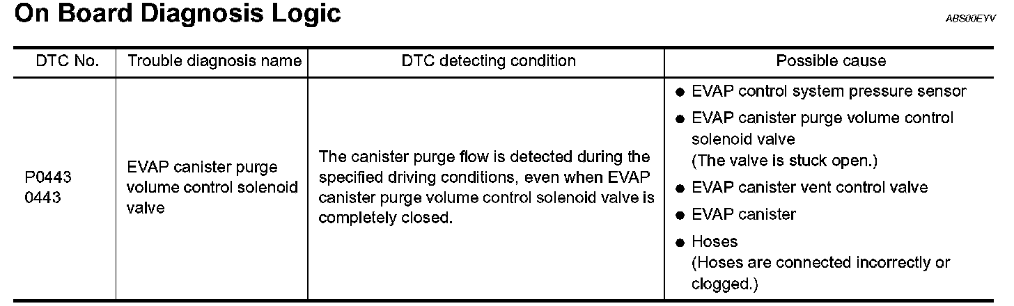 DTC P0443 EVAP CANISTER PURGE VOLUME CONTROL SOLENOID VALVEDescription