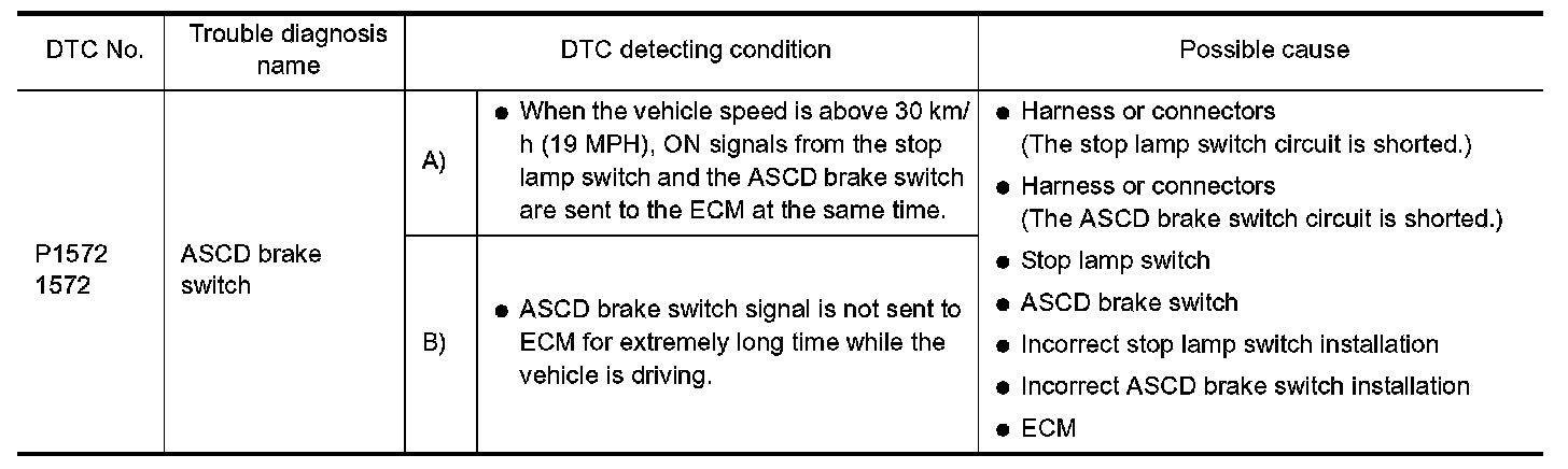 DTC P1572 ASCD BRAKE SWITCHComponent Description
