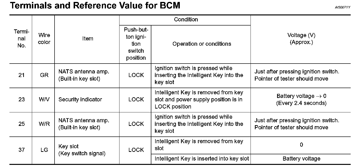 Terminals and Reference Value For BCM