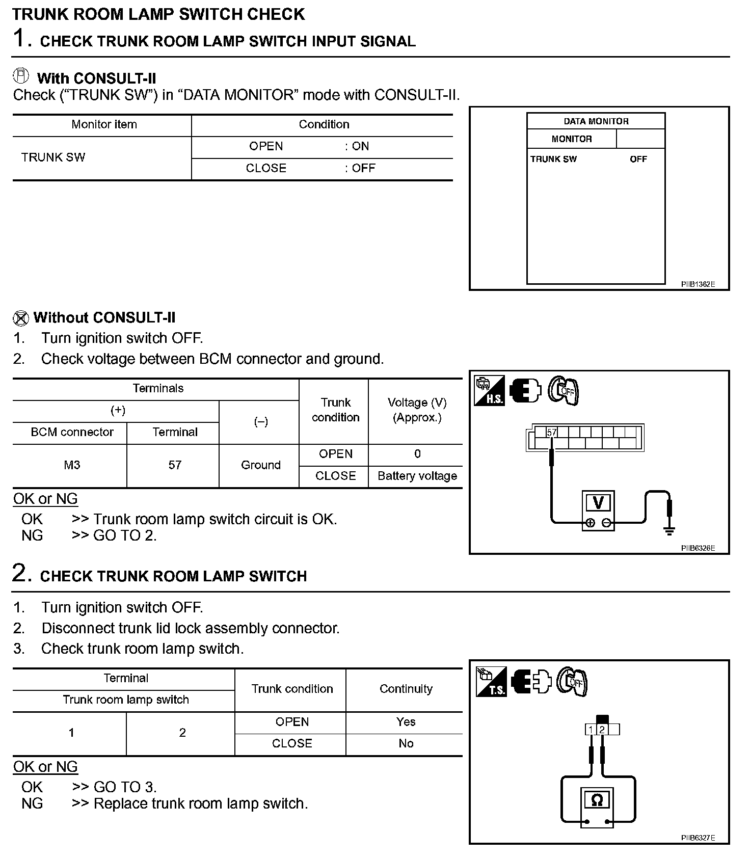 Trunk Room Lamp Switch Check (Steps 1 - 2):