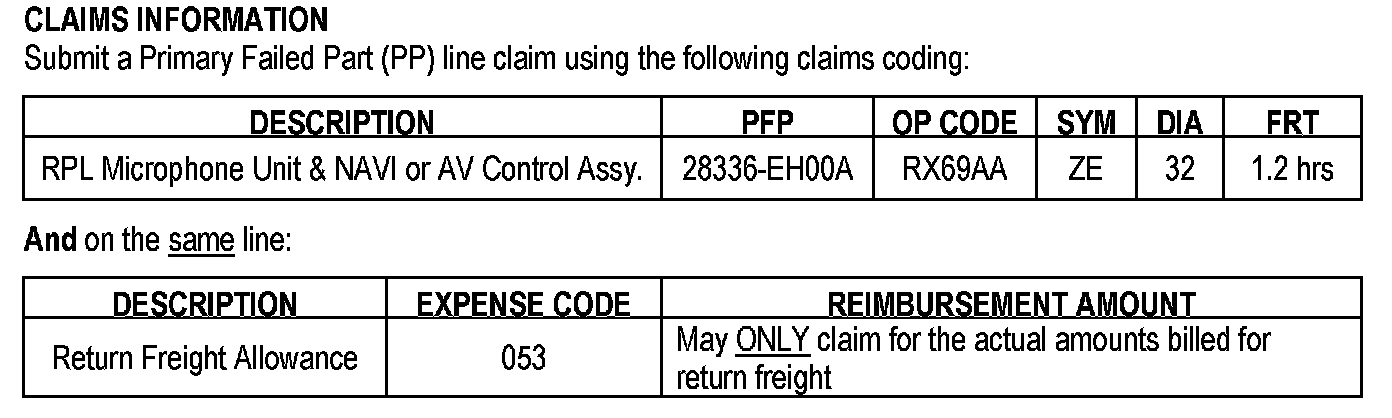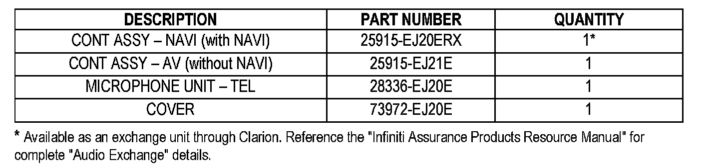Replace the NAVI or AV Control Unit (as applicable) and install the microphone and cover trim from the Parts Information section of this bulletin.