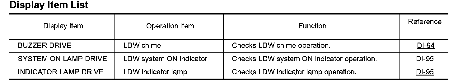 - Active test cannot be started while LDW indicator lamp is illuminated.