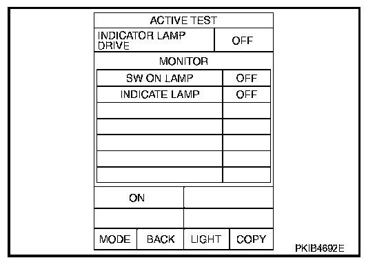 1. Touch "ACTIVE TEST" on "SELECT DIAG MODE" screen. Refer to "CONSULT-II BASIC OPERATION".
