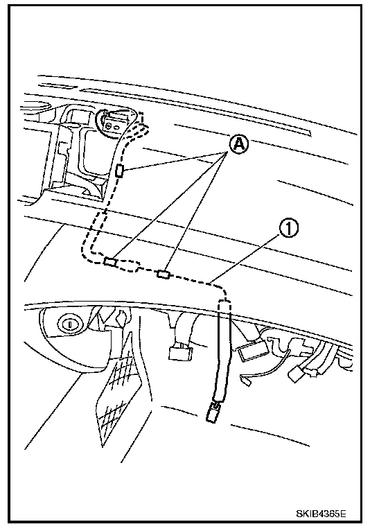 3. Remove clips (A) and remove antenna feeder (1) from instrument panel and pad.