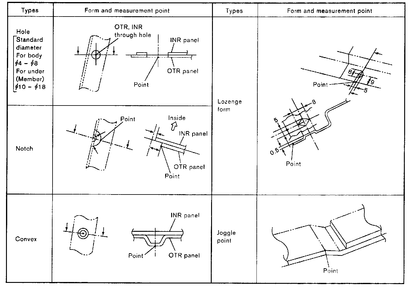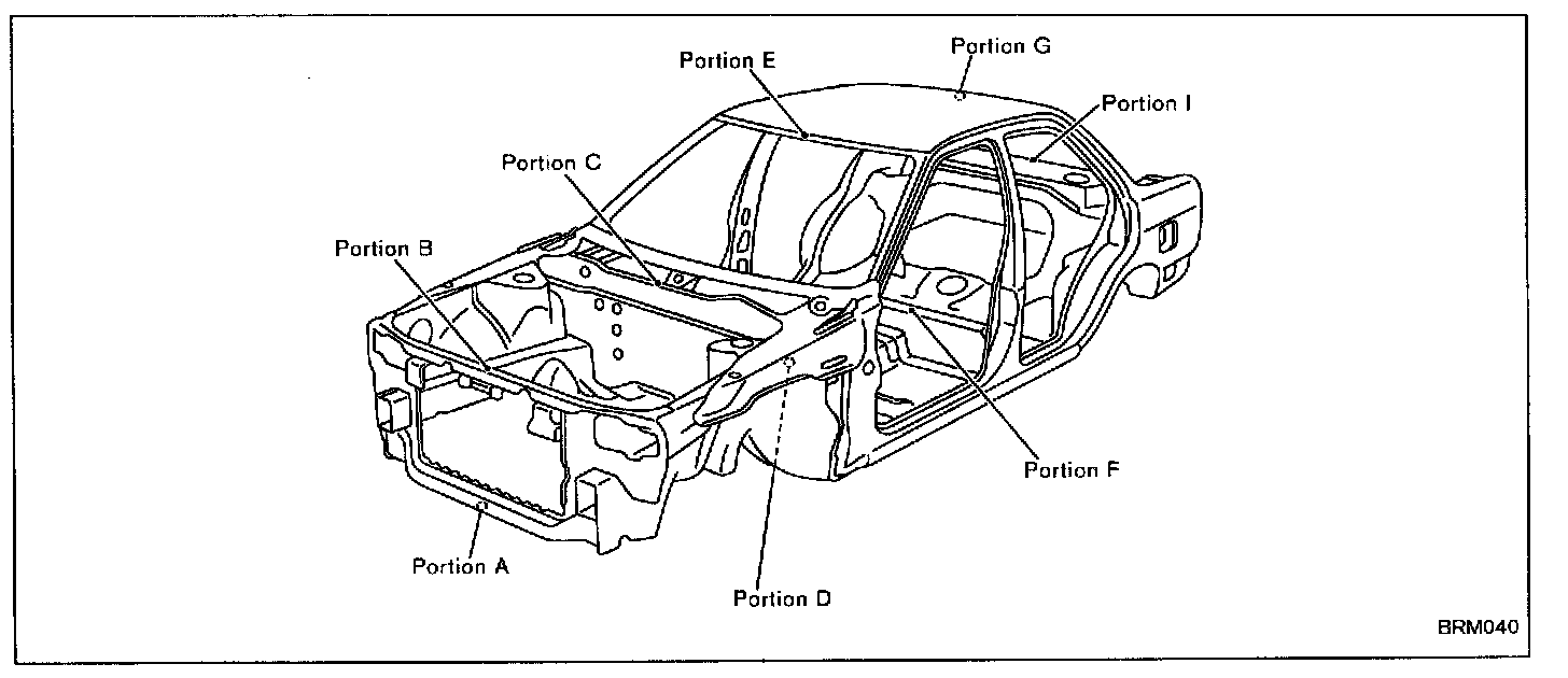 The Body Repair Manual published for each model includes body alignment drawings, body center marks and panel matching marks. These are used to measure the extent of damage done (deformation extent) and to make sure that the dimensions of the body are correct after making the repair.