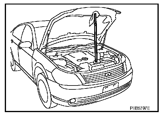 WARNING: Body injury may occur if no supporting rod is holding the hood open when removing the hood stay.