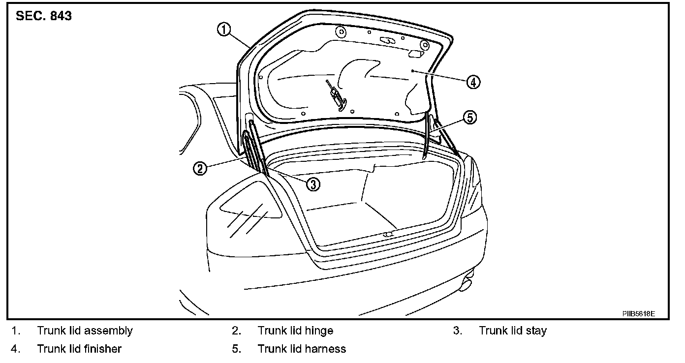 5. Remove the mounting bolts, and remove the trunk lid assembly.