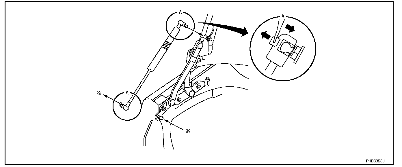 - After installing, perform fitting adjustment. Refer to BL-203, "Fitting Adjustment". Adjustments