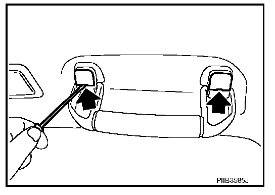 - Assistance grip is crimped from back of headlining. Remove it by disengaging the crimping area of back of lamp after removing headlining from the vehicle.