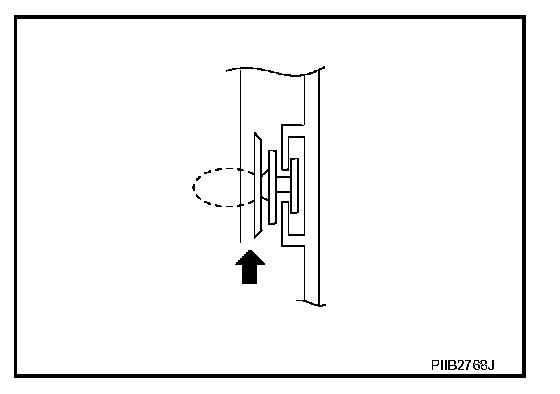 CAUTION: Make sure that clips are securely fitted in panel holes on body when installing, and then press them in.