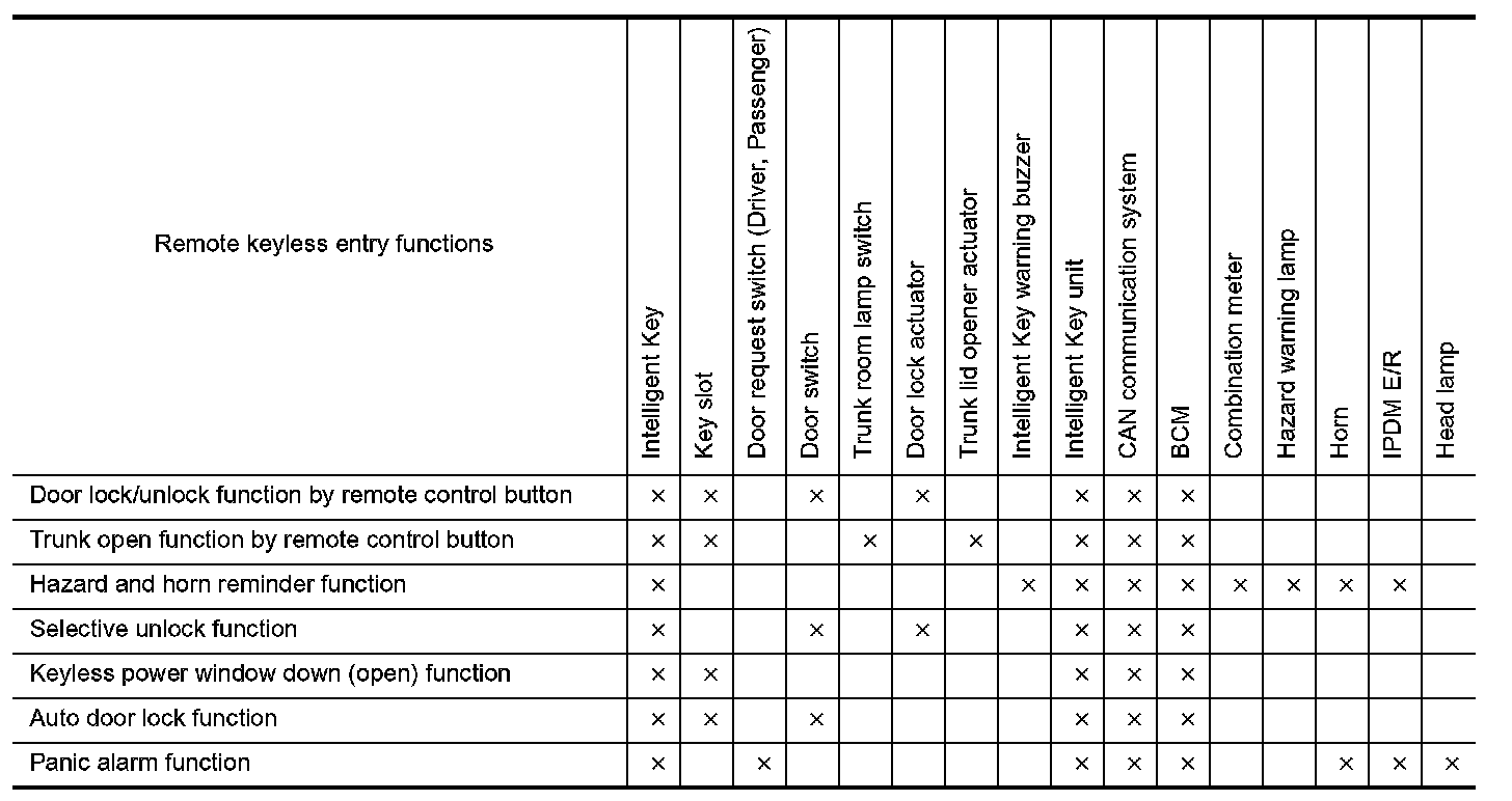 - Intelligent Key unit sends the door lock/unlock signal to BCM.