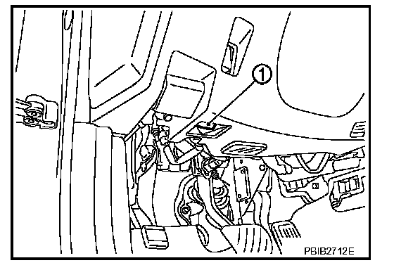 2. Connect CONSULT-II CONVERTER and CONSULT-II to data link connector (1).