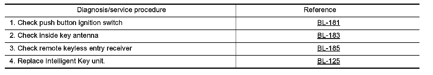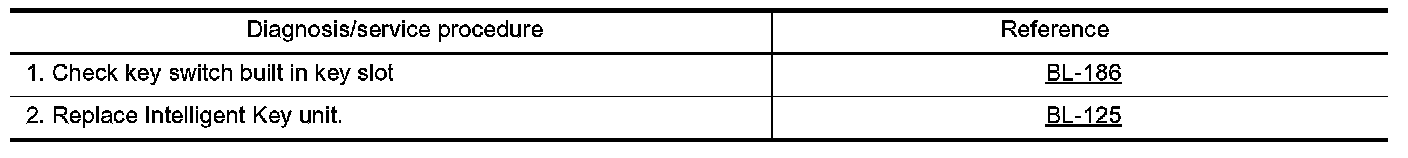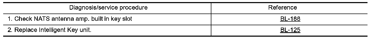 NOTE: If another Intelligent Key or foreign materials are inserted at push-button ignition switch operation, perform the immobilizer ID verification first. When the immobilizer ID verification cannot be performed, the system switches to the Intelligent Key ID verification. Therefore, there is the time difference in the push-button ignition switch operation.